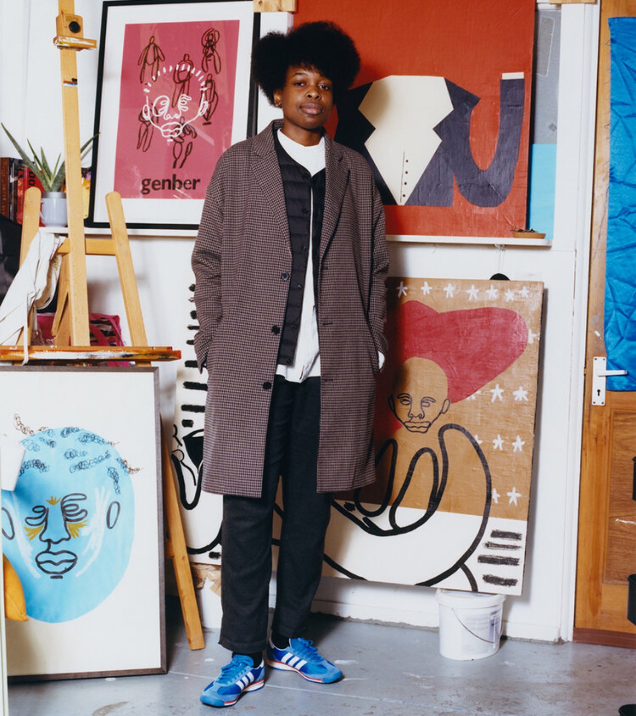 Joy Yamusangie creates art from a range of media: illustration, painting, typography, ceramics and film. Different though they are, Joy’s works often return to similar themes. One of them is music. Another is nature. Their work, which is characterized by black line drawings and vibrant colors, occupies the intersection of the real and imagined, brimming with references from renowned mythologies and intimate memories.